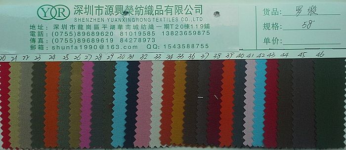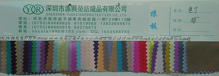 深圳市源興榮紡織品有限公司成立于2002年,江蘇省吳江市有自己的紡織坯布廠,“品質為先,服務至上”一直是公司經營的原則,公司的產品通過了SGS,BV等國際檢測平臺的測試。一直致力服務于各品牌的優質供應商:“H&M”、“AVON”、“PCORA” , 誠信務實是企業的生存之本,干實事,做好服務,精益求精,腳踏實地地經營在競爭如此激烈的紡織市場。