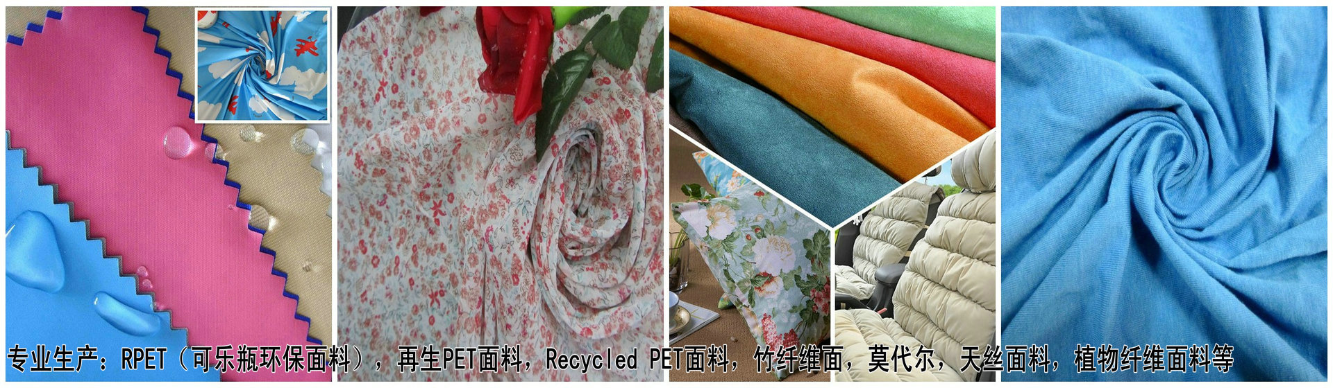 公司的工作理念是:誠信、求實、和諧、高效、創新。 目前主推環保類產品包括:RPET面料(可樂瓶環保布),PET面料,Recycle PET面料,低碳面料,竹炭纖維(竹纖維)面料,T/C滌棉布,環保色丁,再生桃皮絨,麂皮絨等。公司目前所生產的各類產品可進行的深加工包括:抗靜電,抗阻燃,防水,吸濕排汗,熒光,點塑,壓花、涂金、涂銀等等,還有PU、TPU透氣膜復合,PE、PEVA、TPE等環保無毒背膠,及其它特種面料復合于一體。經過環保深加工后,均可通過MTL、SGS、ITS,SCS等國際標準的檢測。我廠是生產RPET面料全國最大的一家廠家直銷價格最低歡迎新老客戶前來咨詢洽談!