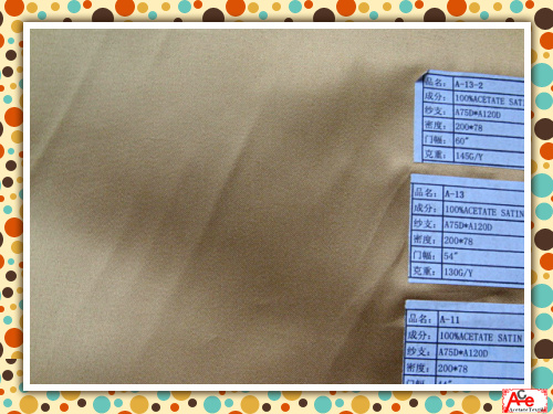 醋酸人棉,醋酸滌綸斜紋,醋酸尼龍平紋,斜紋,色丁,醋酸人絲平紋,斜紋,粗斜紋,色丁