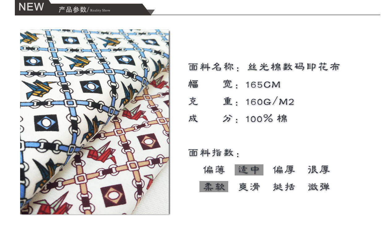 產品關鍵字:絲光棉布,印花布,韓國印花面料,雙絲光棉印花布,數碼印花布