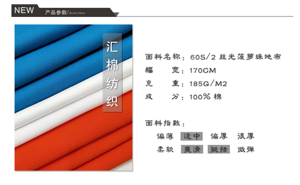 產品關鍵字:絲光棉珠地不,絲光棉網眼布,絲光棉菠蘿珠地布,菠蘿紋網眼布,珠地布
