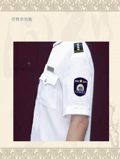 在選擇制作此類特種用途的制服的面料時,務必要一絲不茍、精益求精、嚴格把關,**不允許放松標準,以次充好。如果不是情況較為特殊的話,一般不應當選擇滌綸、滌絲、尼龍、中長纖維等人造化學纖維面料,來制作商界人員的制服。用各種化纖制作的制服,在短時間之內,大都色彩鮮艷、免燙抗皺,堅牢耐穿,而且還可以大大地降低制作成本 新式文化市場執法標志服裝