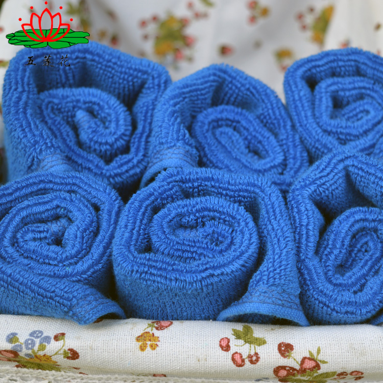 廠家直銷酒店用品毛巾全棉32線50g藍(lán)色小方巾可訂制尺寸顏色