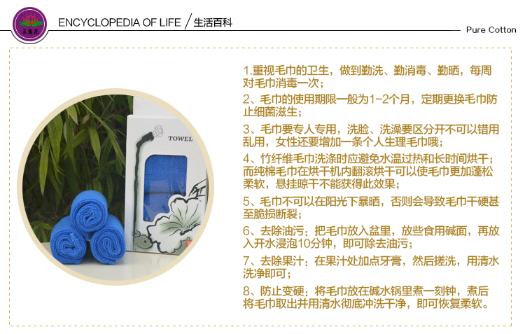 毛巾廠家直銷酒店用品毛巾全棉32線50g藍(lán)色小方巾選取材料為純天然的巴基斯坦棉紗,采用天然的材料與精湛的毛巾制作工藝結(jié)合而成;不加任何有刺激、傷害人體的化學(xué)染劑。綠色環(huán)保、源自天然。優(yōu)質(zhì)的棉紗做出來的毛巾,不僅舒適柔軟而且具有按摩皮膚和緩解疲勞的生物功效。毛圈平整、均勻,毛巾摸著柔軟、蓬松。聞著無異味。水洗不會掉色。