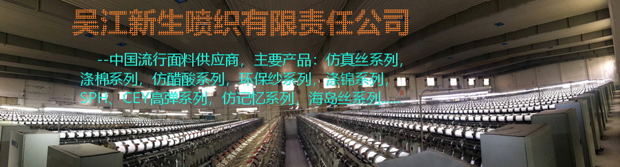 吳江新生噴織有限責任公司成立于1999年,是早批生產經緯加捻面料的噴織廠,是集面料的研發生產和銷售為一體的自營進出口生產企業。公司擁有國際先進的生產設備和雄厚的技術力量,致力于高新產品的開發和生產,采用科學的管理方法,在產品質量上使用ISO9001:2000國際化標準模式,產品質量穩定、可靠,員工積極向上,年生產能力過億,多次榮獲“中國流行面料 -fabrics china入圍企業”;2010-2011年度榮獲“中國東方絲綢市場流行面料 聯盟企業”。