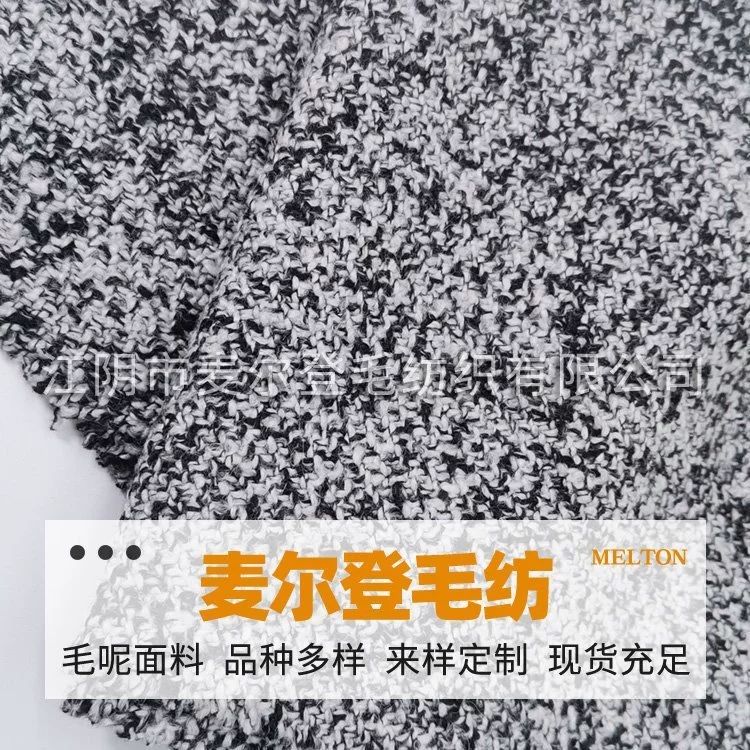 麥爾登毛紡是一家集研發,銷售為一體的毛紡面料公司。公司秉持:“誠信為本、質量優先”的經營理念,近年來發展迅速,在市場有很多的老客戶,公司是多個服裝毛紡面料供應商之一,并以效率質量產品和服務。精誠的服務理念,公司面料開發,為適應市場的需求,公司每年都會研發一批新產品投向市場。公司主要產品有:麥爾登呢、雙面呢、格子呢、法蘭絨、大衣呢、立絨、斜紋順毛、人字呢、編織呢、粗花呢、雙面順毛等各類粗紡毛呢。麥爾登呢面料是我公司的強項,具有市場競爭力。公司常規品種常年備貨,一般品種均有樣布可為客戶打樣提供方便。公司也接受客戶訂單以及來料加工。我們竭誠歡迎各位來電垂詢,能為更多客戶提供提供方便。我們竭誠歡迎各位來電垂詢,希望能有進一步的合作。