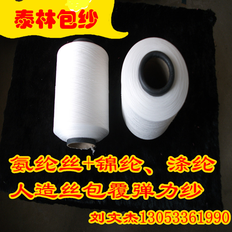 4、非彈力包覆紗:紗類+滌綸(錦綸)/1F×2(雙包)、亞麻+DTY、粘膠紗+長絲、粘膠長絲/錦綸彈力絲、氨綸包覆紗/TR(棉、TC、腈綸)、精梳棉(粘膠、竹纖維、各種紗)+滌綸或錦綸雙包、滌綸DTY(白、色)+氨綸包覆紗+粘棉復合包纏非彈力紗線。