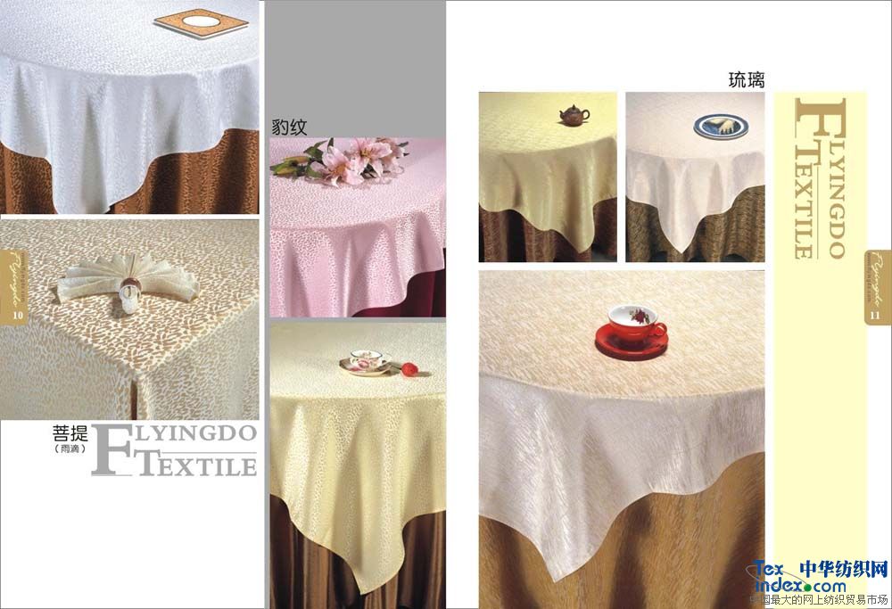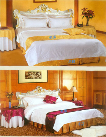 主要銷售客房;平紋 中,高檔【多種顏色40支-60支緞條】床單,被罩,枕套,枕芯,被子,墊被,床裙,床罩,床尾墊,浴簾以及毛巾系列。 餐飲系列;多種顏色中高檔 【純棉 方格 化纖 花色圖案】臺布 口布 臺墊臺裙 臺呢 椅套 印花臺布具有不褪色、耐洗、耐磨、色澤艷麗、平整挺括且使用壽命長的特點,印花臺布規格2.8m,表面繡有花朵圖案作裝飾,造型典雅、大氣,精美時尚,使整體更加美觀,深受廣大消費者的喜愛。白色印花臺布采用優質化纖材料制作而成,款式新穎、物美價廉,是酒店、賓館、家庭等場所的必備用品之一。