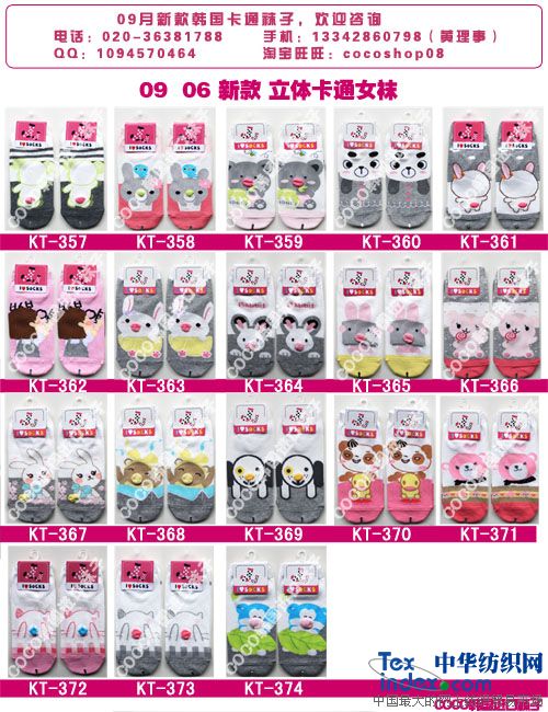 立體襪子是在一般卡通襪的基礎上增加立體設計,在襪面上繡上凸出的圖案,如凸出的嘴巴、耳朵、鼻子、尾巴、屁股等,讓襪面上的圖案更加鮮活,充滿生氣。少男少女們都喜愛有佳,而且價格適中,實體店家們的反映很好。