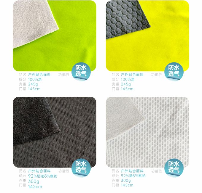 產品關鍵字:戶外面料,運動,防水,透氣,復合面料
