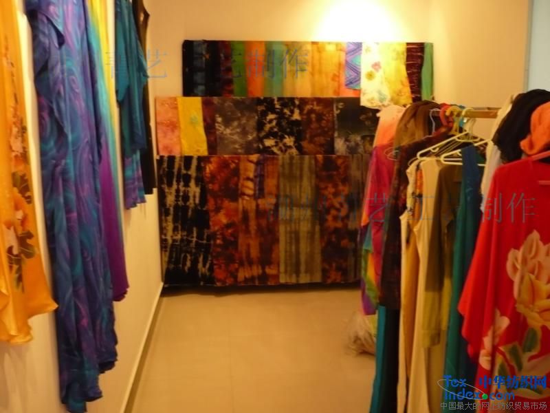為了適應服裝市場與內貿,外銷的需要,湖州勤藝服飾廠工藝部,技術力量雄厚,主營扎染,手繪,吊染,浸染(面料,童裝T恤均可),產品覆蓋真絲類,棉布類,燈心絨類,遠銷歐美,日本,我廠位于素有“魚米之鄉,絲綢之府”南太湖明珠之稱的湖州市,本廠成立于2001年,是一家專業從事各類紡織面料、服裝扎染、吊染加工的私營獨資企業。
