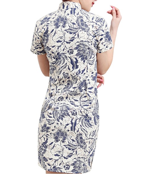 古典高雅青花瓷印花設計工藝,讓旗袍更加具有古典精致,高貴而典雅。