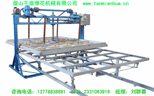 眉山千層彈花機械有限公司是專業研究制造棉被(絮、胎)生產設備的企業。其前身是國營機械廠,資源整合后專門致力于棉被設備研發和制造,技術力量雄厚,制造設備精良,具有十余位工程師和技師專門從事棉被設備研發工作,主要產品有:吸塵彈花機、精細彈花機、寬幅可調彈花機、揉機(磨盤機)、無網棉被專用揉機、紗布頭開松機、棉被一次成型機等。完善的服務體系,專門有一批服務技術人員流動服務于全國各地市場,產品深受用戶肯定和喜愛。公司本著“重質量、守信譽、促發展、創價值”的經營理念。結合目前彈棉被(絮,胎)行業的市場變化,為整合彈棉行業的資源優勢和提升彈棉行業形象,增強競爭能力,為彈棉行業生產經營者提供更大的發展空間,特推出品牌連鎖,成套設備,無網千層棉絮(胎)專利產品,先進經營思想觀念的整套經營運作模式——“譚棉坊”棉絮店連鎖經營模式。